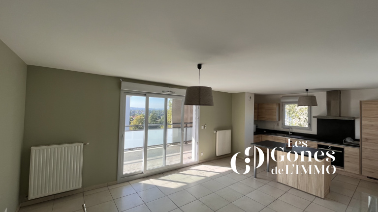 STE FOY LES LYON, proche du centre, au calme & proche de toutes les commodités (37 chemin des Fonts), dans résidence récente de standing, bel appartement T4 de 89,69m2 élevé au 4ème étage avec ascenseur. Cet appartement entièrement refait à neuf est composé d'un grand séjour en carrelage donnant sur une terrasse de 20m² orientée plein Sud-ouest offrant une belle vue dégagée, d'une cuisine US équipée (Placards, hotte,plaques, four et frigo) en carrelage, 3 chambres en parquet dont 2 avec un accès sur un balcon, d'une salle de bains agencée, wc séparé et buanderie. Eau froide individuelle + chauffage ind. au gaz . Cet appartement dispose d'un d’un garage double au -1 n°51-52. Cet appartement est disponible le 20 mars 2026