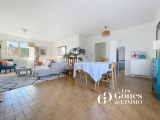 Un escalier mène au premier étage où se trouve un salon / salle à manger très lumineux, orientés Est-Ouest, une cuisine, trois chambres, une salle de bains, un toilette séparé et de nombreux rangements. Une terrasse couverte complète ce niveau.
