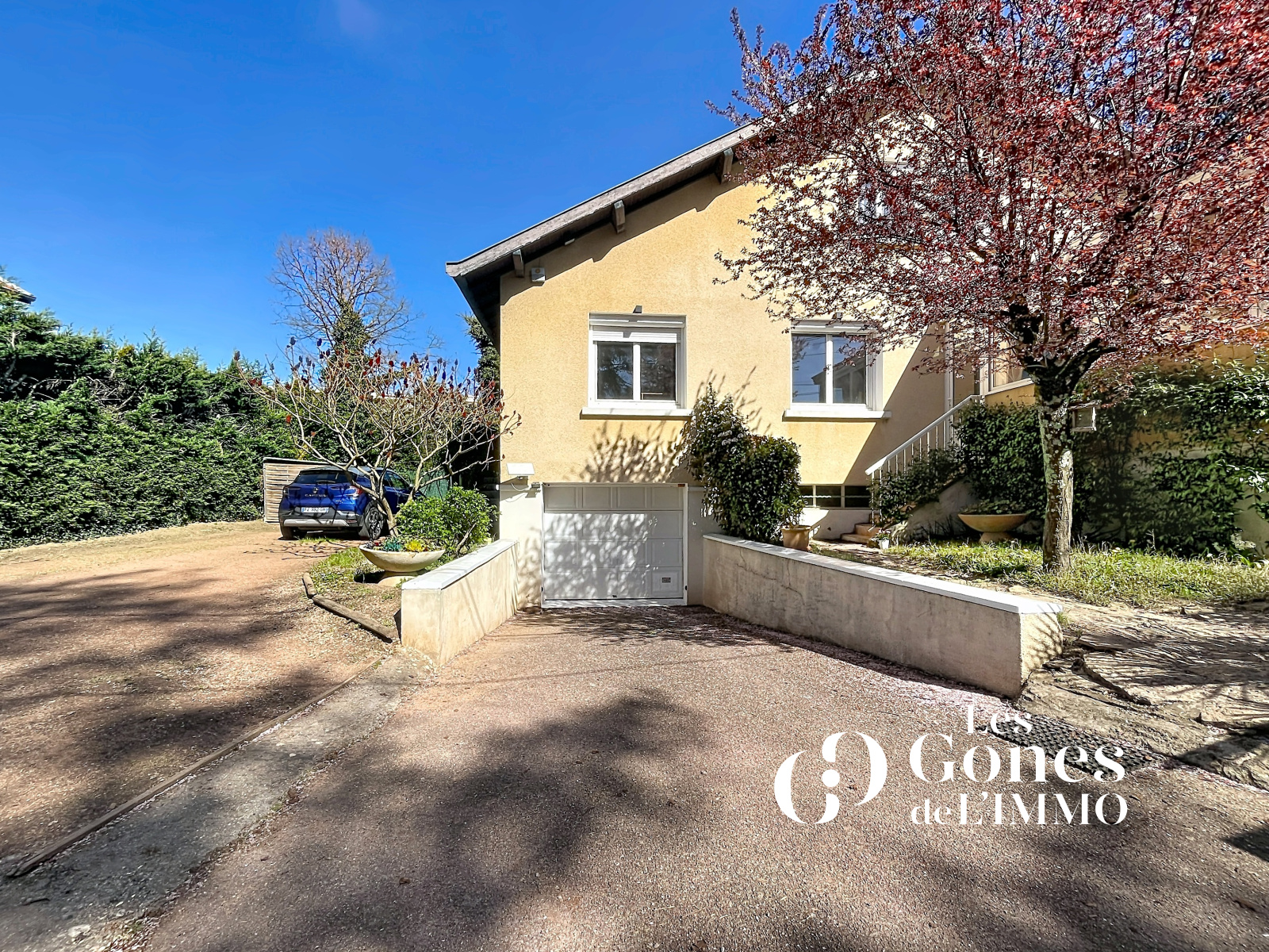 Le sous-sol d’environ 70 m² comprend notamment un grand garage de 42 m². La maison est équipée de volets électriques et d’un chauffage pompe à chaleur avec radiateur en fonte.